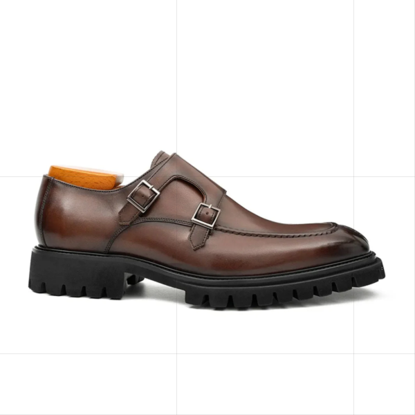 Brown Double Monk Strap Leather Shoes