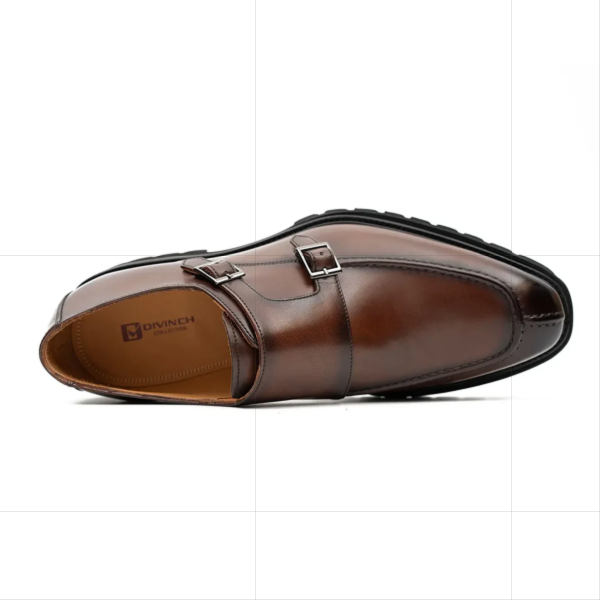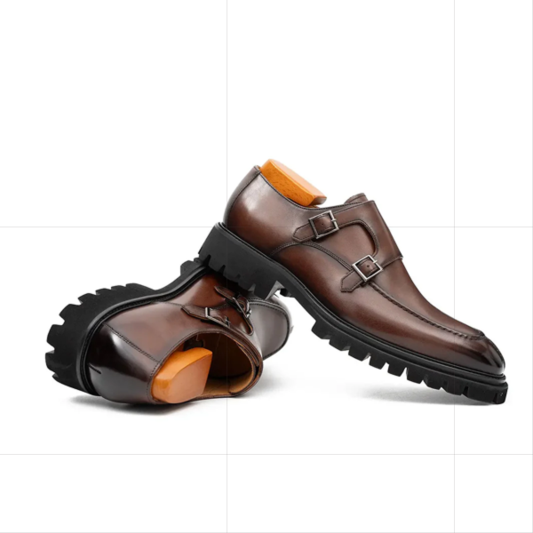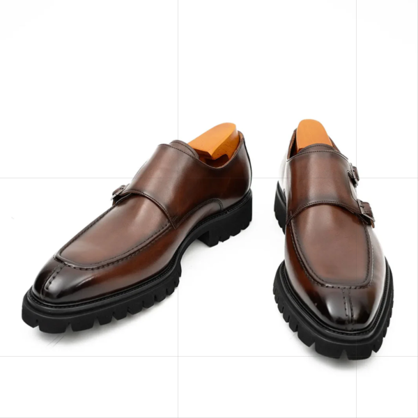 These brown double monk strap leather shoes combine classic sophistication with modern elegance. Crafted from genuine leather, they offer a polished finish, secure dual straps, and a comfortable structure perfect for office, event, or smart-casual wear. Their tailored silhouette enhances versatility while delivering durability and sleek appeal. Ideal for men who value standout style, these shoes elevate wardrobe essentials with refined, timeless detailing.